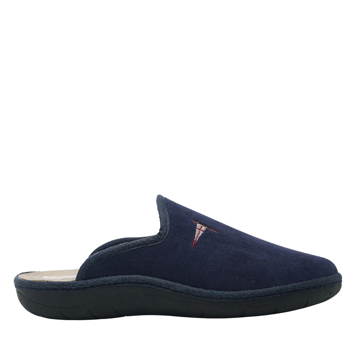 Ανδρικές Παντόφλες Σπιτιού της εταιρείας Adam's, κωδ. 754-23504-006 με Ύφασμα εξωτερικά και με Ζεστή Επένδυση εσωτερικά. Διατίθεται σε χρώμα Μπλε.
